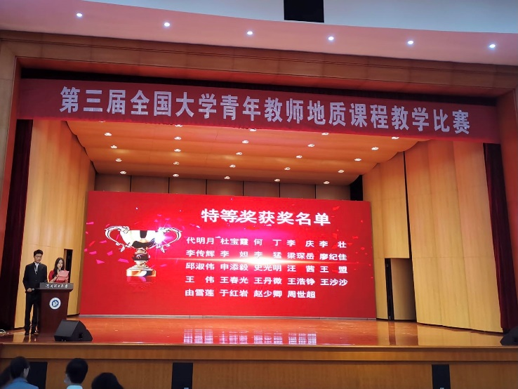 2021年5月15日至16日,由中国地质学会主办,中国地质学会地质教育研究分会、河南理工大学承办的第三届全国大学青年教师地质课程教学比赛在河南理工大学举行。公司参赛教师梁琛岳副教授和王春光副教授表现优异,荣获特等奖。经理单玄龙教授应邀出席大赛闭幕式,为获奖选手颁奖。太阳集团tyc151荣获“优秀组织奖”。
