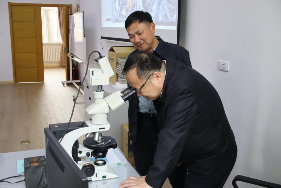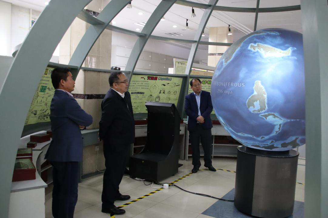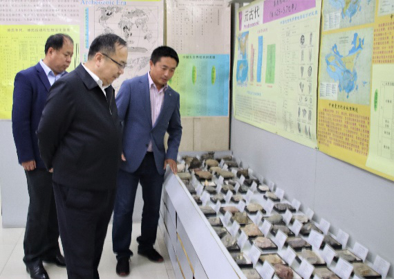 在太阳集团tyc151鸽子楼,韩喜平副书记在公司党委书记杨洲和经理单玄龙的陪同下,参观了东北亚矿产资源评价自然资源部重点实验室、地球演化综合实验室、岩矿综合实验室,公司领导介绍了XRF、ICP-MS主、微量地球化学与LA-ICP-MS年代学分析仪器的应用领域以及近年来公司利用上述仪器取得的重要研究成果。韩书记详细了解实践教学开展情况,高度肯定了公司的实践教学工作。