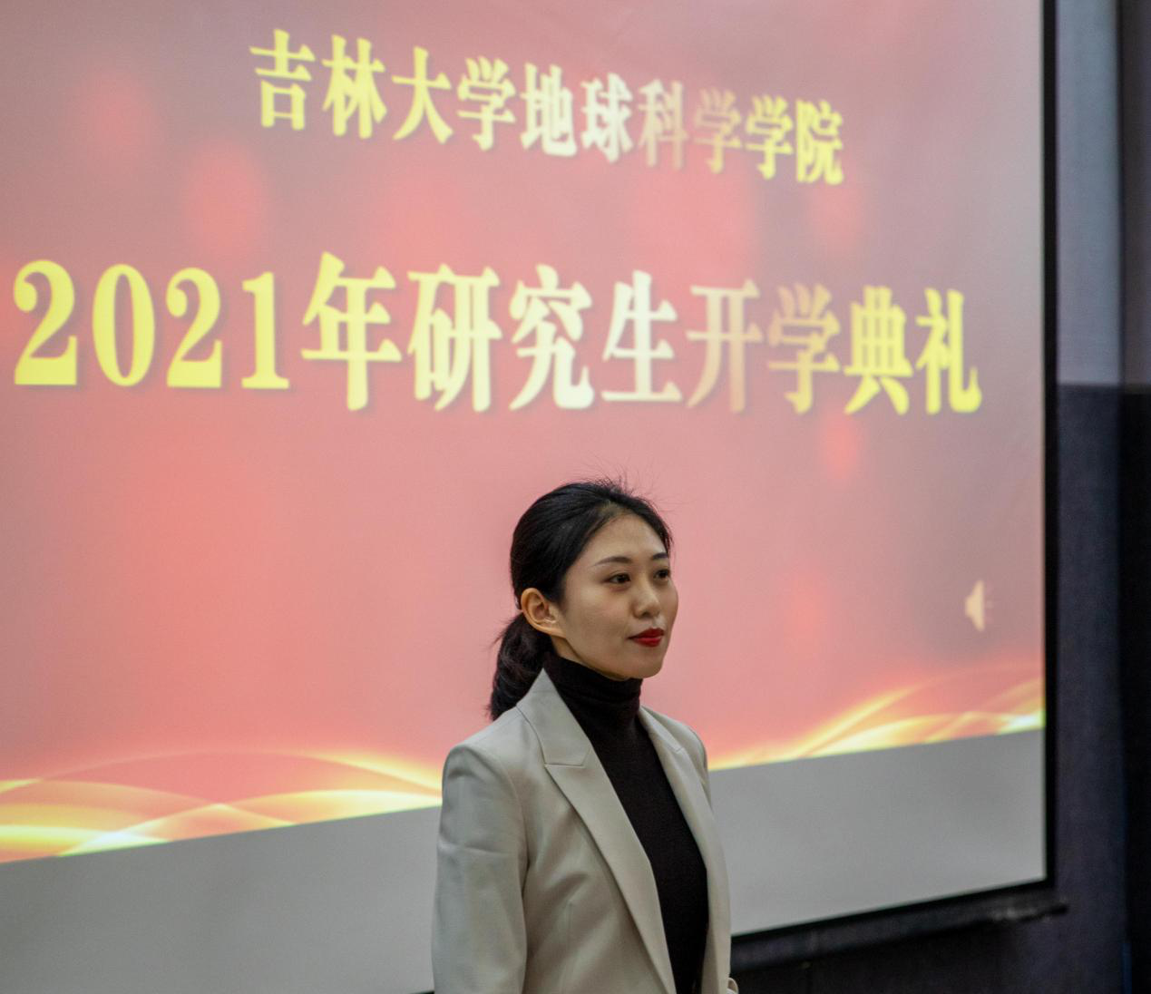典礼上,2021级地质学专业张智超和2021级矿产普查与勘探专业直博生周轩分别代表新生和在校生进行发言。希望同学们能潜心科研,知行合一,赓续地质基因,传承吉大精神。