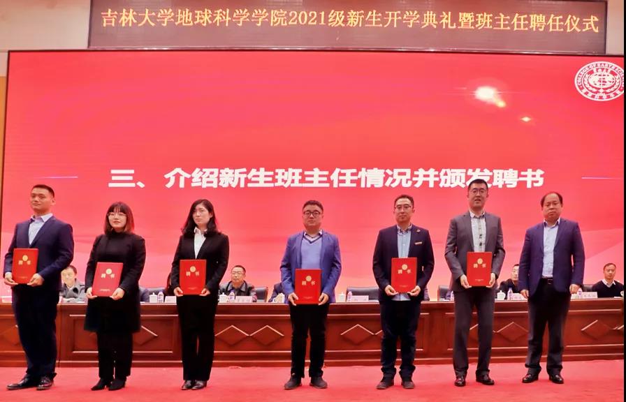 接着,李阳书记向2021级的同学们介绍了各位班主任,杨洲书记为各位班主任老师颁发聘书并合影留念。