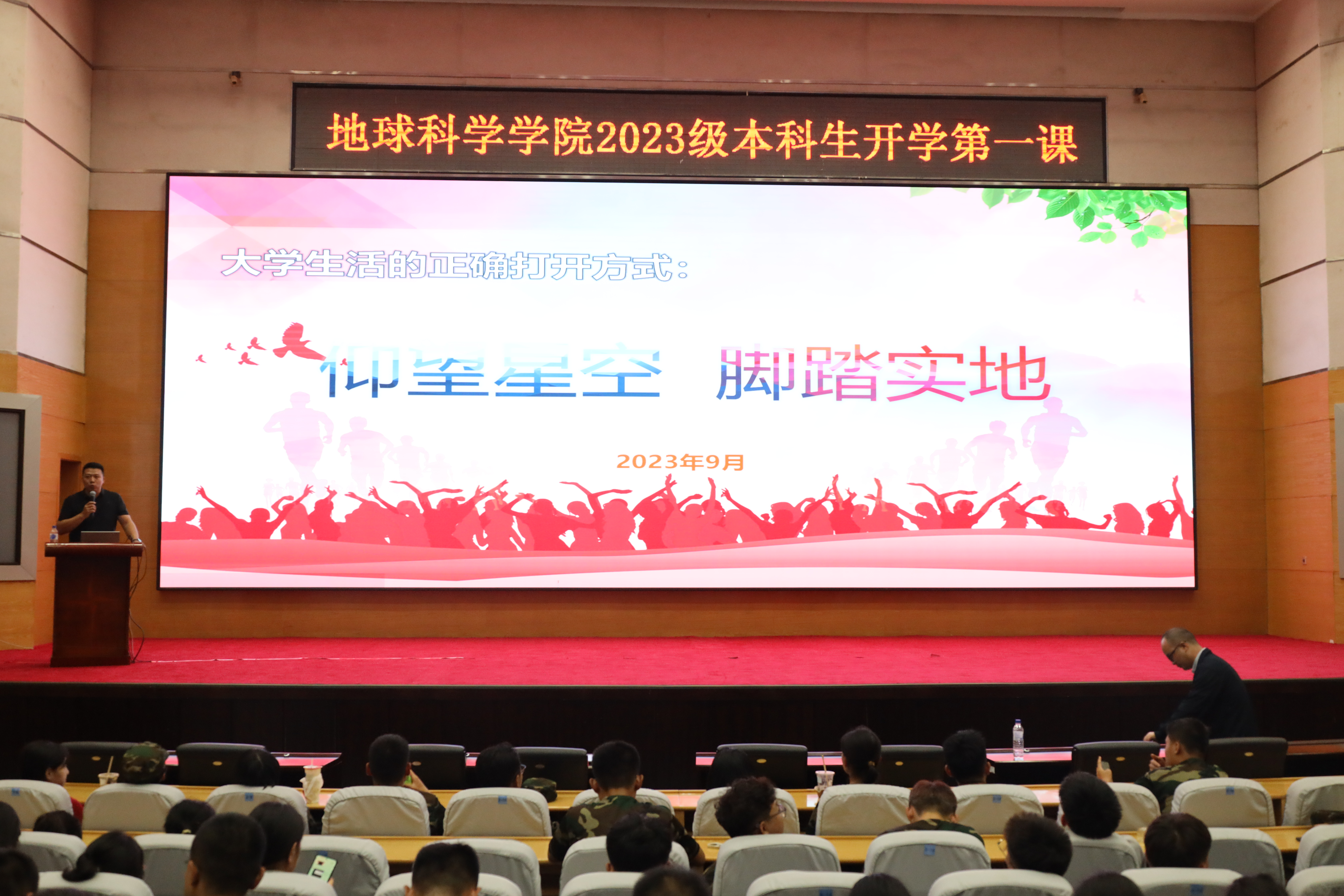 为了让新生尽快适应老员工活,帮助新生树立理想信念,公司于2023年9月3日晚六点在东荣会议中心举办了“开学第一课”系列活动,地球科学公司党委副书记兼副经理李阳为全体新生讲授第一堂思政课。辅导员杨凯凯和全体23级本科生参加本次活动。