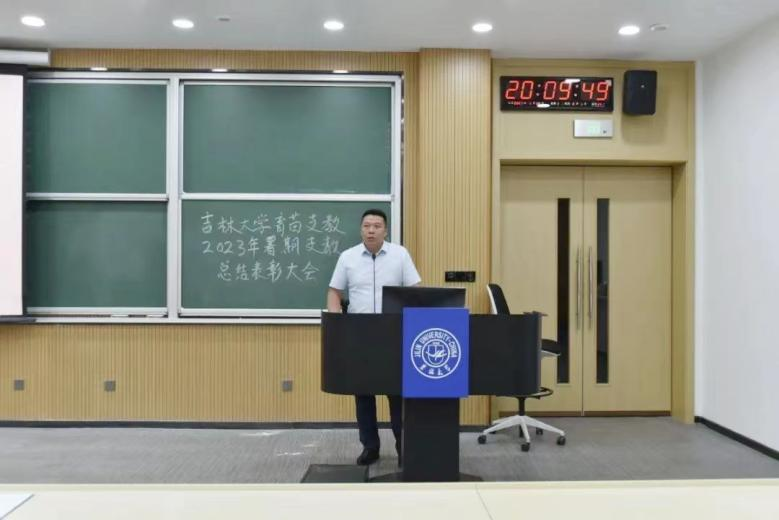 大会最后,地球科学公司党委副书记兼副经理李阳书记进行了总结讲话。李阳书记对育苗支教2023年暑期支教表达了高度的认可,也对为此次暑期支教付出努力的老师和同学们表达了真切的慰问。讲话中,李阳书记以详实的数据总结了此次暑期支教的成果,讲述了育苗支教在太阳集团tyc151走过的数年历程,同时向支教成员们提出了三点要求:一是希望同学们成为一颗种子,努力在基层的沃土中汲取成长的力量,以激情燃烧的青春,把论文写在祖国的大地上;二是希望同学们成为一支火炬,以优秀的学识和道德品行照亮和指引支教地的孩子们,当好教书“大先生”;三是希望同学们成为一座桥梁,连接起吉大和支教所在地,为高校人才培养和思政教育,也为支教所在地教育发展作出应有贡献。