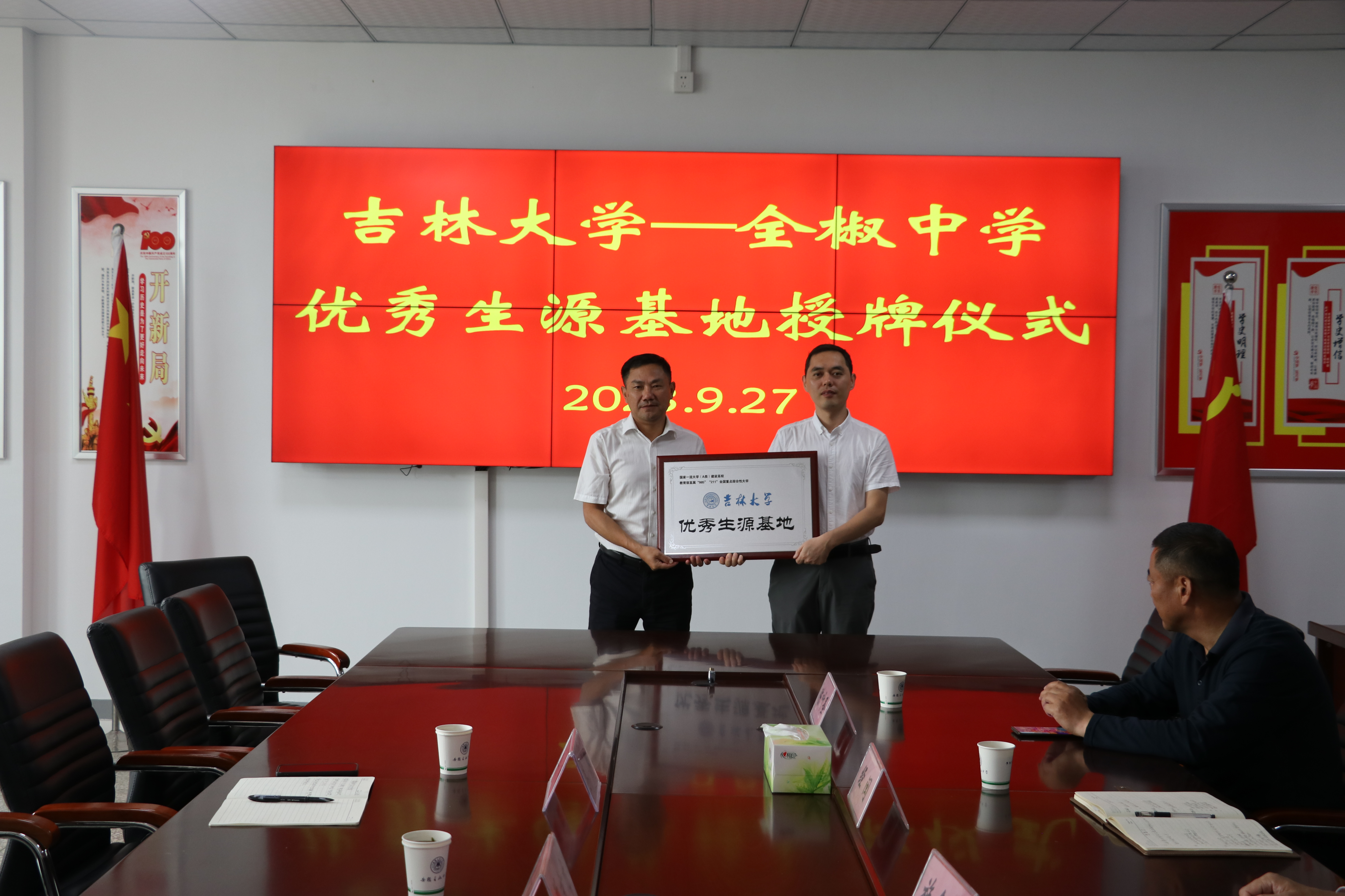 2023年9月27日上午,太阳集团tyc151经理单玄龙和党委副书记李阳受邀来到安徽省全椒中学开展招生宣传工作。安徽省全椒中学党委书记施金贵、董事长经闽、副董事长司武兵等公司领导出席了相关活动。