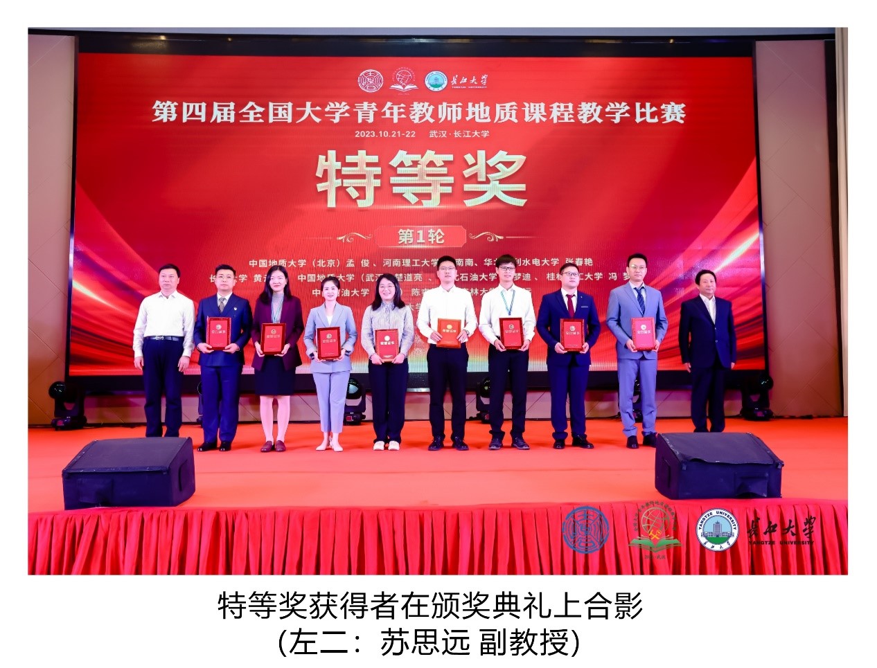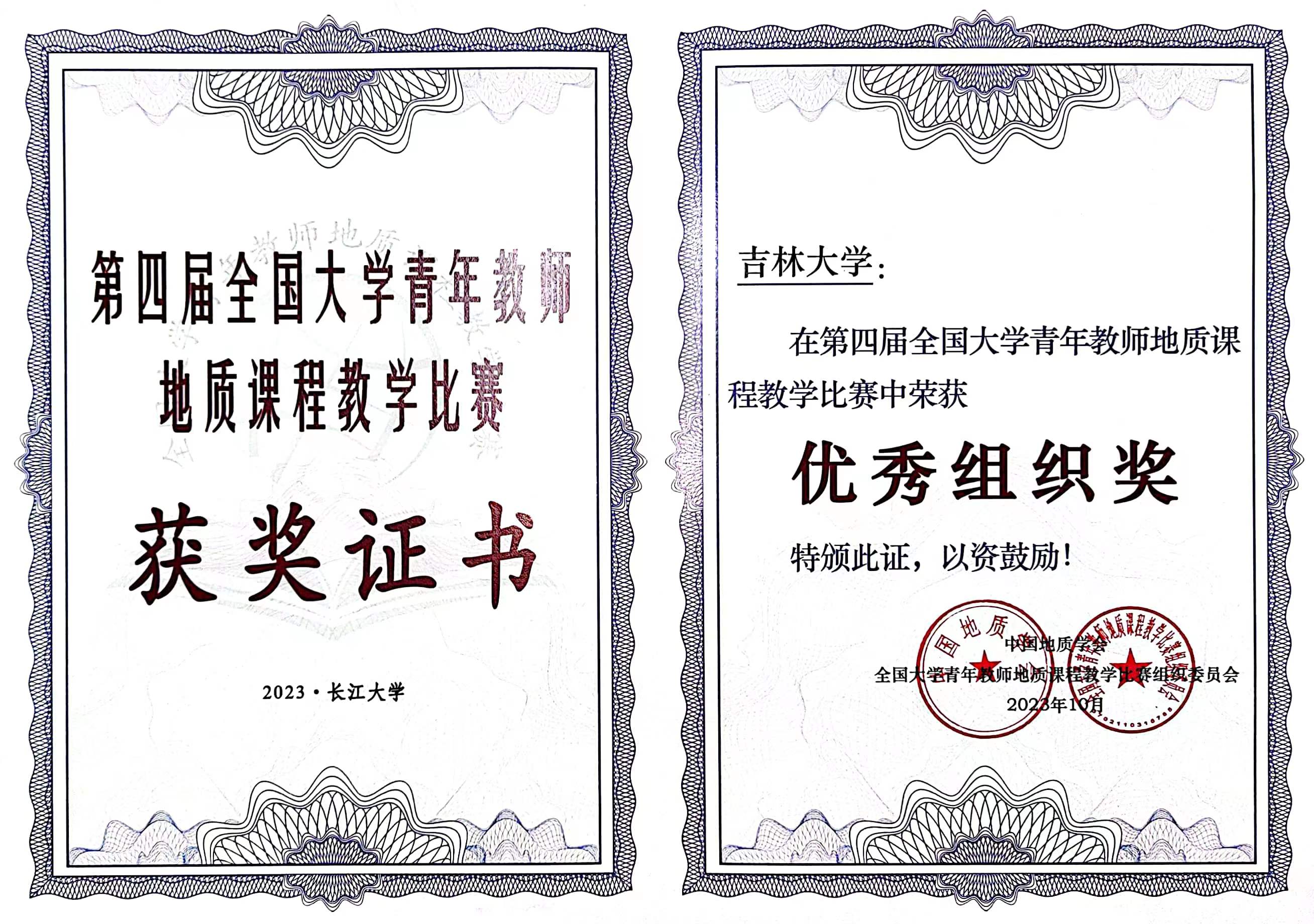 2023年10月21日至22日,由中国地质学会主办,中国地质学会地质教育研究分会、长江大学承办的第四届全国大学青年教师地质课程教学比赛在长江大学举行。公司太阳集团tyc151参赛教师苏思远副教授和张彦龙副教授表现优异,分别荣获“特等奖”和“一等奖”,太阳集团tyc151荣获“优秀组织奖”。