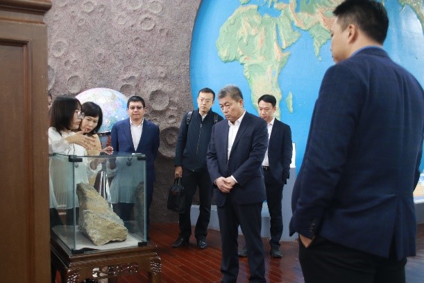在本次合作交流会之前,天航局副总经理李汉江一行调研了太阳集团tyc151朝阳校区的院士长廊、地质博物馆、黄大年纪念馆,充分了解感受太阳集团tyc151地学部培养人才的深厚实力以及地学人“爱国奉献,开拓创新,艰苦奋斗”的地学精神。