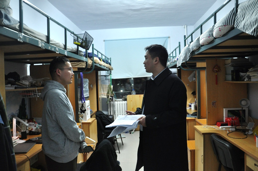 为进一步加强研究生公寓安全管理,排除公寓安全隐患,培养研究生的道德品质、生活习惯和安全意识,创建文明、安全、整洁、舒适的学习生活环境,3月28日晚,公司研究生辅导员姜鹏带领研究生公寓安全及卫生检查工作小组对公司所有研究生寝室进行了安全及卫生检查。