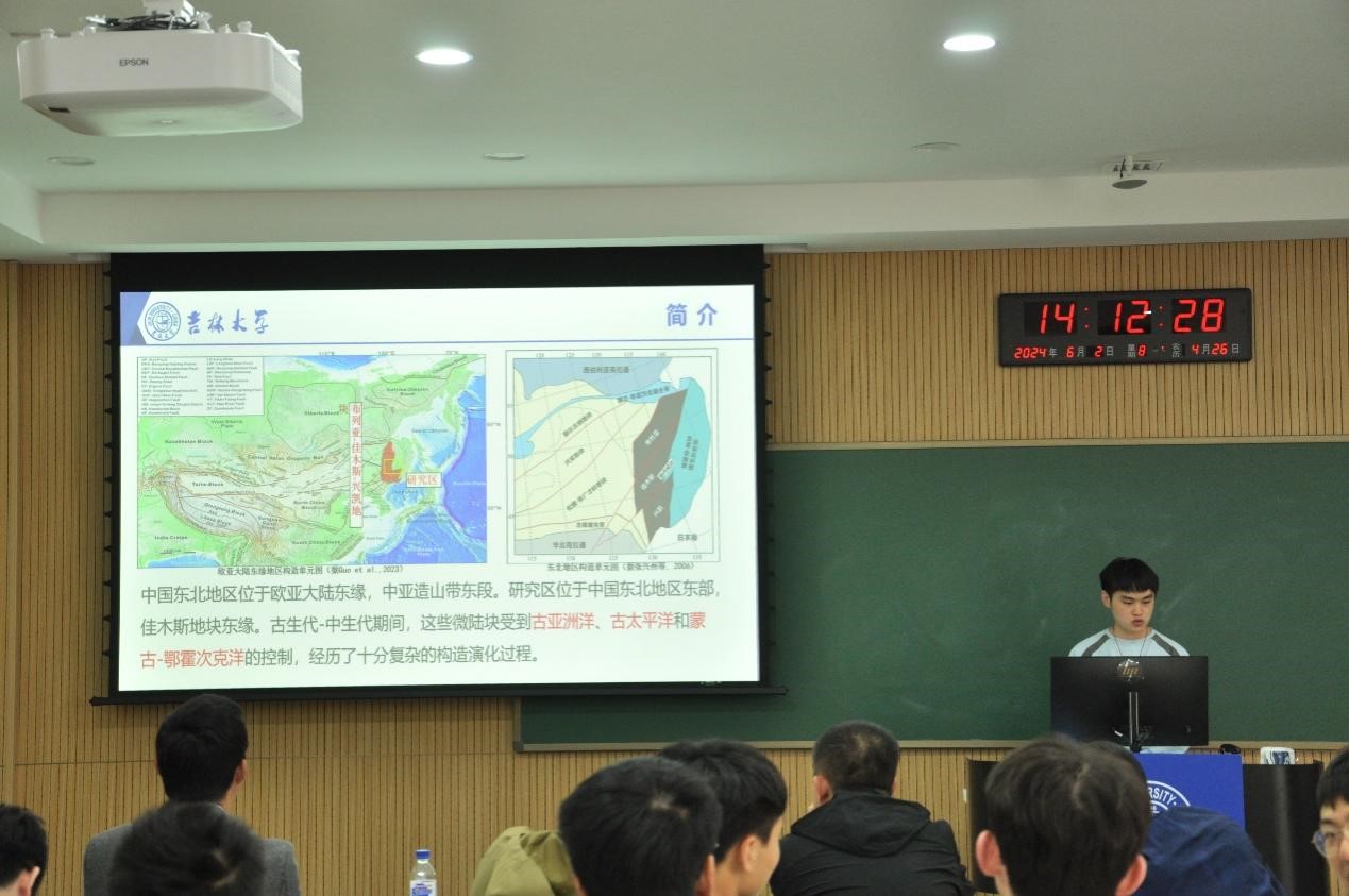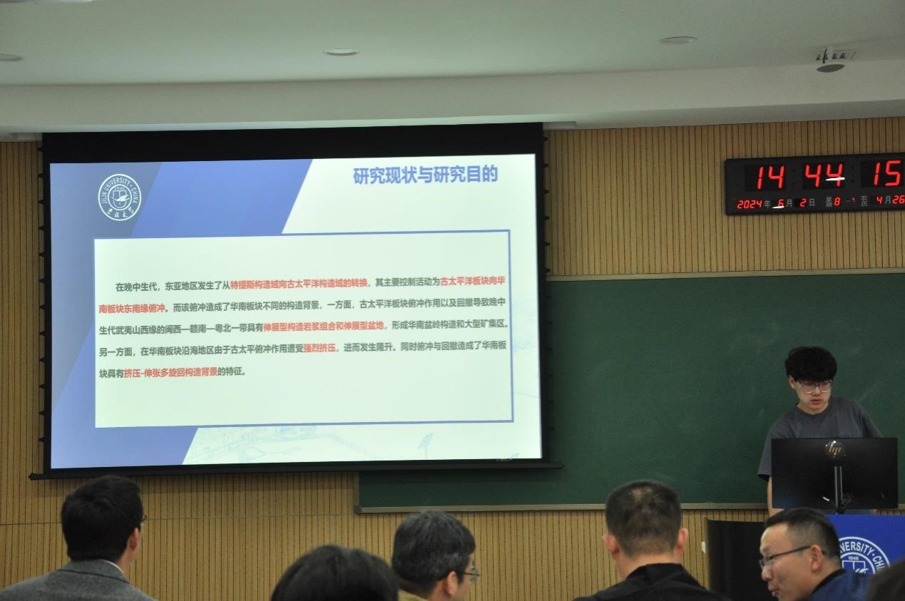 活动上,14位主讲人依次分享了自己的研究。分享的内容立足于特定地质时期和区域的地质活动和构造演化,既有以青藏高原的不同地区为研究区域,探讨不同地质时期的岩浆活动及其对板块构造的影响,分析地壳减薄事件;也有以佳木斯地块和海南岛为研究区,分析不同地质时期的构造演化;还有部分同学立足于地质活动造成的影响和化学测试技术的应用,分析研究板块构造的动态过程,研究岩浆活动对地质结构的影响等。