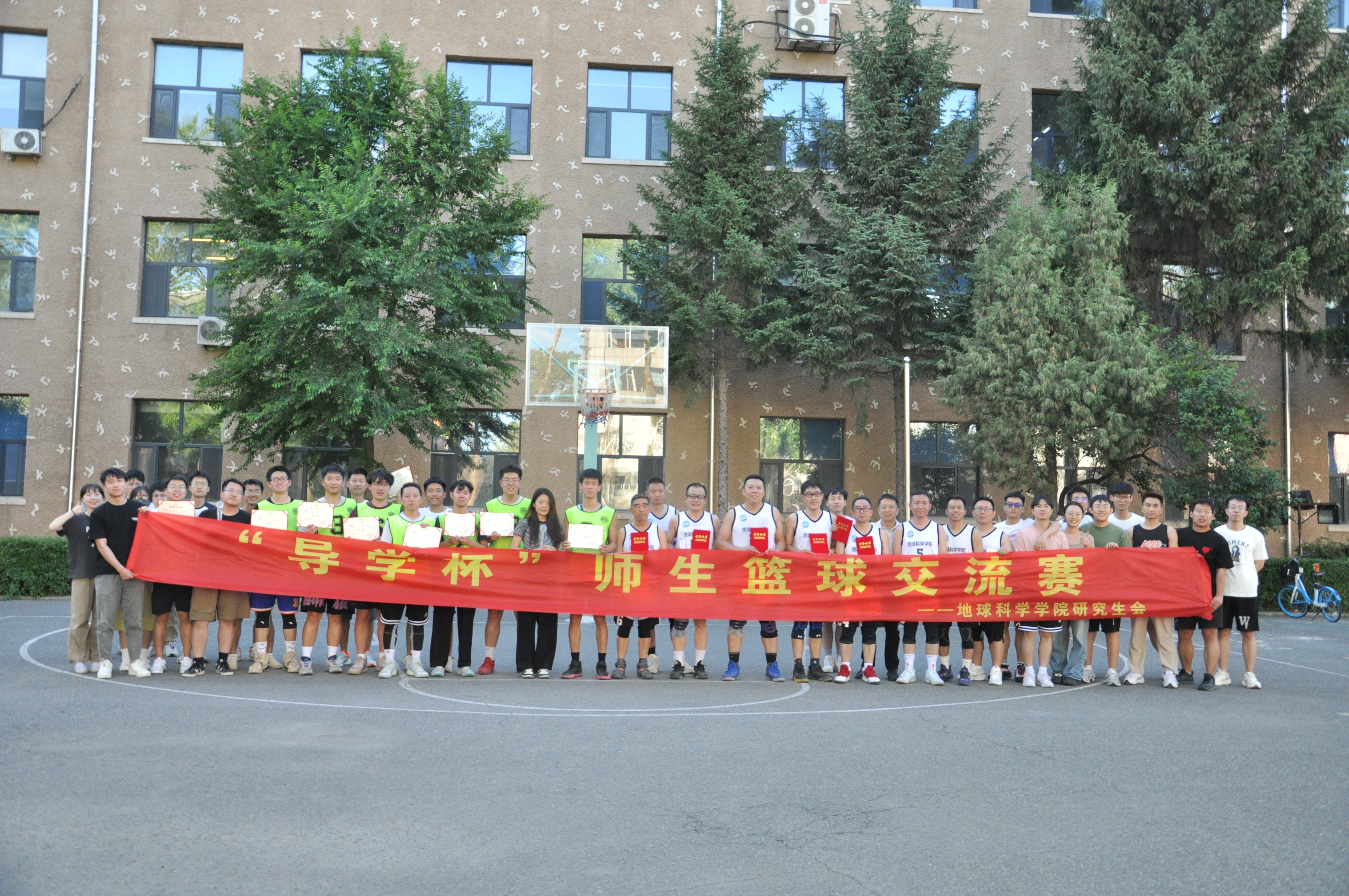 为响应习总书记对新时代青年的寄语,促进导学关系,推进研究生“五育”并举全面发展,充分释放体育育人效能,太阳集团tyc151于6月3日至6月17日在鸽子楼篮球场举办了“导学杯”师生篮球交流赛。本次比赛共有2支导师队伍和4支研究生队伍参加。