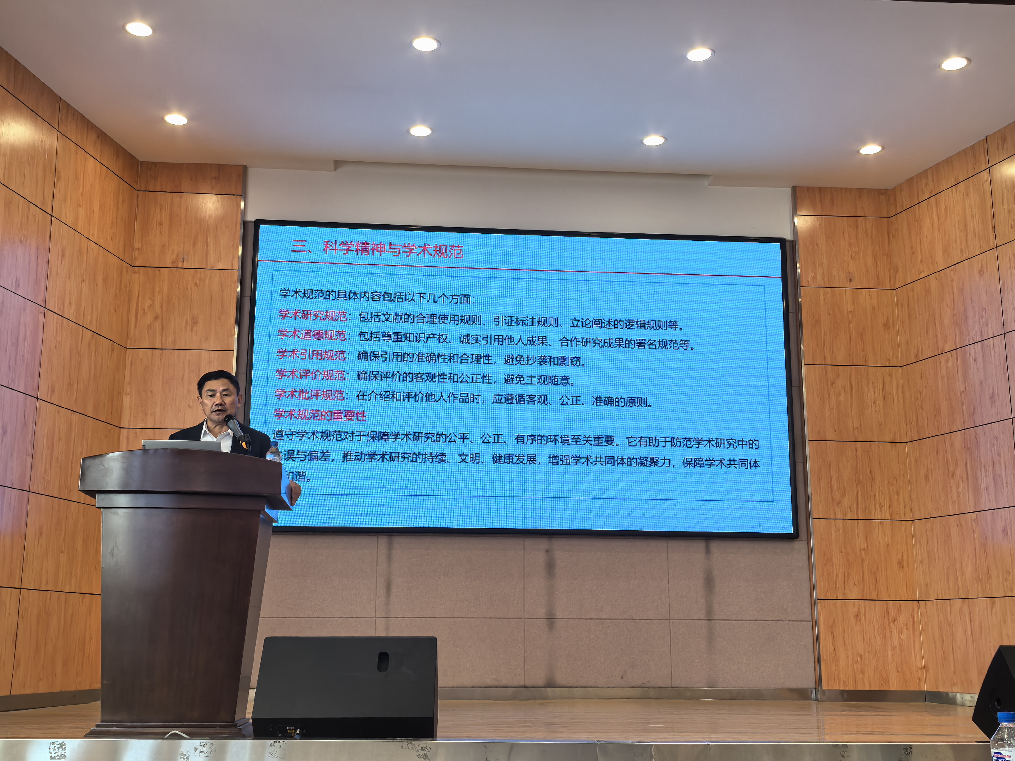 活动伊始,单玄龙经理向同学们介绍了我国在国家发展中对教育、科技和人才的重视,强调了这三者在推动社会主义现代化建设中的核心作用。“新时代地球科学肩负着重要使命,地质工作将大有可为”,单玄龙经理从推动绿色发展、促进人与自然和谐共生、加快构建新发展格局、着力推动高质量发展等方面回答了“地学何为”这个问题,鼓励员工们利用科技手段探索新知识、新技术和新方法,推动科技创新,为社会带来变革。同时为研究生讲解了科学精神和科学规范内涵,强调他们是在研究生阶段高质量科学研究的重要保障。