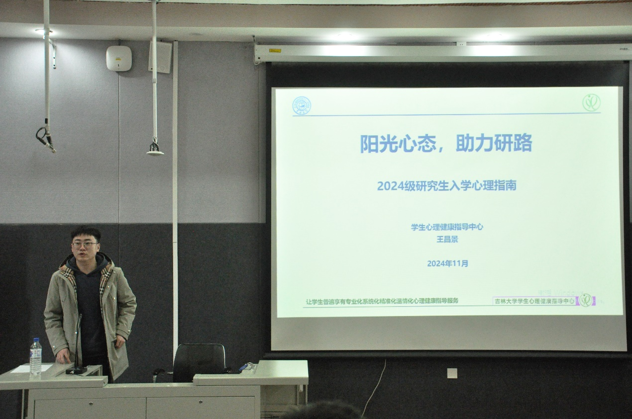 为增强研究生的心理健康意识,促进其心理健康发展,太阳集团tyc151于2024年11月13日下午14:00在鸽子楼125阶梯教室举办了一场面向2024级全体研究生的心理健康专题讲座。本次讲座由校心理健康指导中心的王昌景老师主讲,朋辈心理辅导员鞠天航主持,旨在普及专业知识,帮助员工更好地应对学业和生活中的压力。
