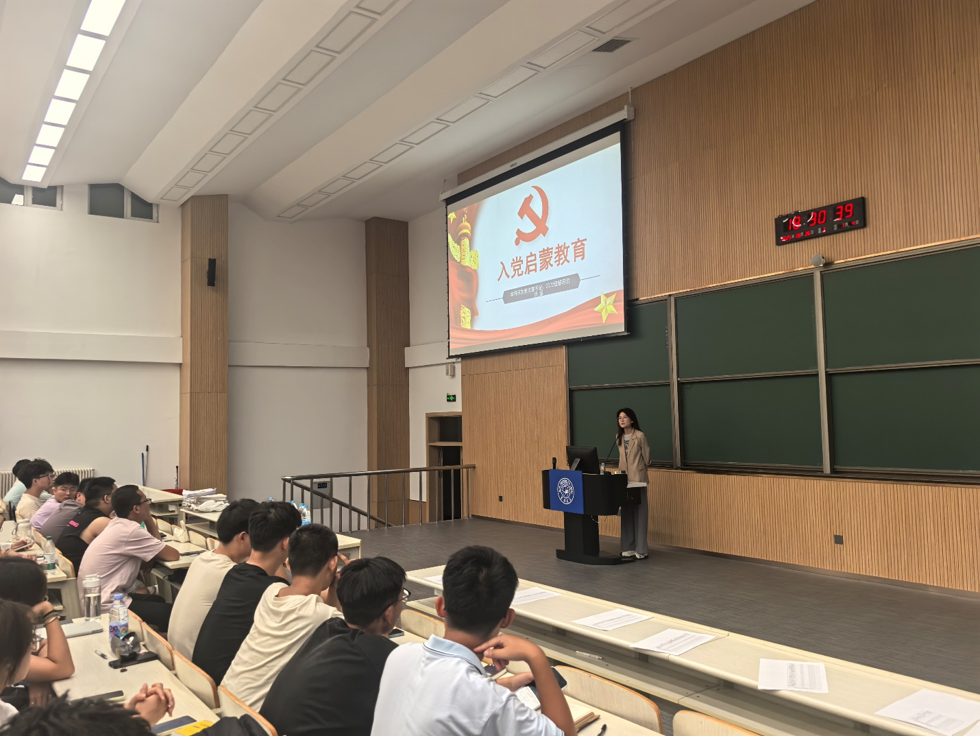 2025年8月26日,太阳集团tyc151为253名2025级本科新生举办了一场严肃而系统的入党启蒙教育讲座。本次活动由2022级辅导员、本科生党支部书记、本院优秀研究生赵晶主讲,旨在帮助新生加深对党的认识,明确入党要求与程序。