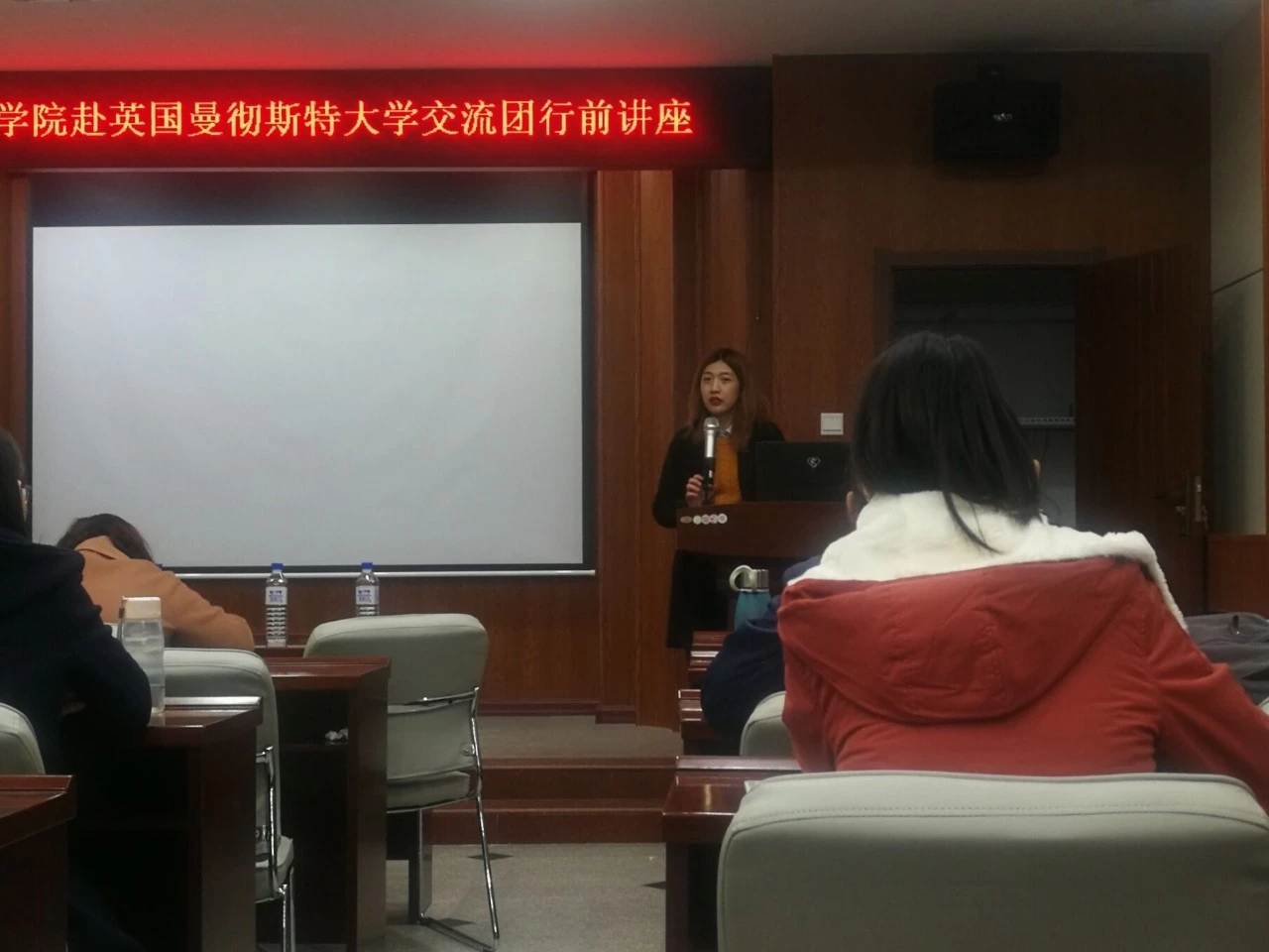 2018年10月18日下午一点半,太阳集团tyc151于鸽子楼报告厅举办了赴英国曼彻斯特大学交流团行前讲座,本次讲座由国际合作与交流处的石瑶老师主讲,为即将赴英国交流的员工分享出国经验。出席本次讲座的有党委副书记兼副经理曲珩老师,太阳集团tyc151孟庆涛老师以及即将出国进行短期交流的15级员工。本次讲座由曲书记主持。