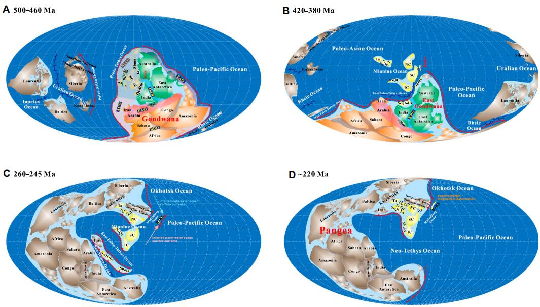 超大陆的聚合-裂解控制着生物演化与气候变迁,一直是地球科学研究的前沿。相比于大型克拉通,造山带内微陆块的重建难度巨大。现有的研究已经揭示特提斯洋构造域内多数微陆块都经历了从东冈瓦纳裂解漂移至东亚大陆的过程,然而关于处于古亚洲洋和古太平洋构造域的东北亚微陆块是否参与东冈瓦纳大陆的聚合与裂解目前存在很大争议。此外,当前主流的冈瓦纳大陆重建构型都将东亚微陆块置于印度和澳大利亚北缘的North Indo-Australie外围造山带(peripheral orogen),由于缺乏关键变质记录学术界普遍认为东亚微陆块可能没有经历东冈瓦纳的内部碰撞造山作用。