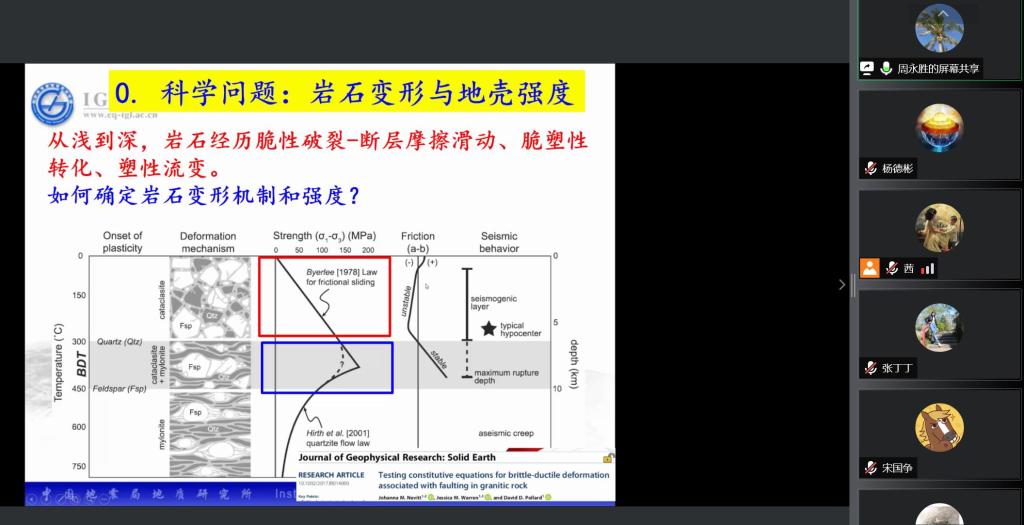 周永胜老师首先以地震剖面分析数据与流变结果的高度匹配为出发点,成功引起了大家对流变的兴趣,大陆下地壳流变是大陆板内构造变形、强震孕育和发生的基础,与国民经济生产生活高度相关,是大陆动力学研究的前缘课题。