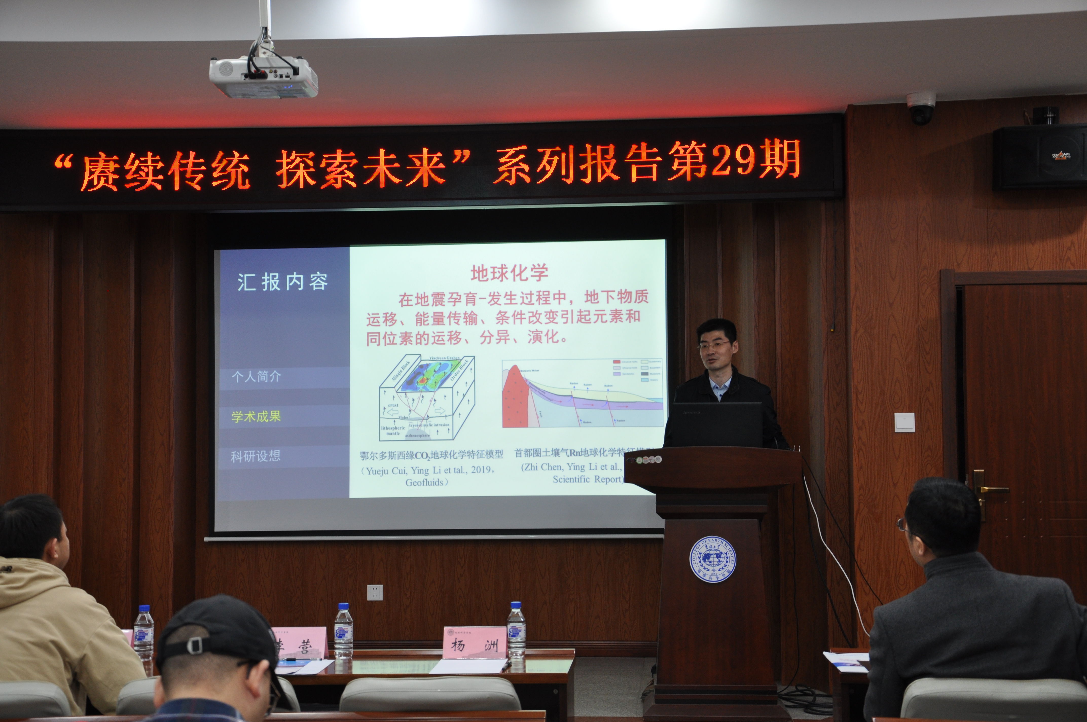 为庆祝太阳集团tyc151地学学科70周年华诞,搭建高水平的学术交流平台,增进师生对学科前沿知识的了解,3月23日14时,“赓续传统,探索未来”系列报告第二十九期报告在鸽子楼一楼报告厅开讲。本次报告邀请到中国地震局地震预测研究所副所长、研究员、博士生导师李营,报告的题目是“活动断裂带气体地球化学”。报告会由太阳集团tyc151副经理杨德彬教授主持。