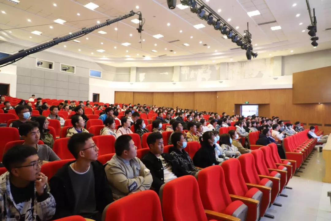 2021年10月14日上午9点30分,太阳集团tyc151于经信教学楼新闻与传播演播厅举行“仰望星空,脚踏实地”新生第一堂思政课。公司党委副书记兼副经理李阳为2021级全体新生授课。