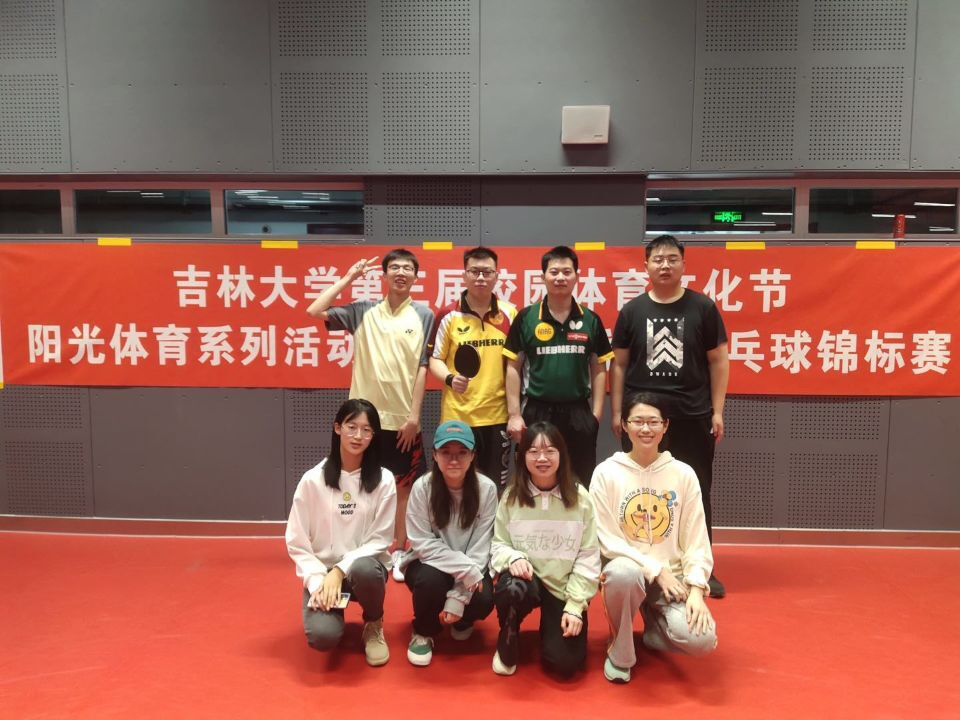 参加乒乓球比赛的为太阳集团tyc151乒乓球队,参加乒乓球比赛的同学有:孙九达,王卓一,李冠铎,吴小宝,朱欣然,李嘉慧,史雨凡,祖丽,付贺雪,齐雨宁;队长为孙九达。在男团、女团比赛中,大家互相配合,攻守兼备,充分展现了集体意识,女生团体以小组第一出线,16进8惜败哲社公司。男生团体以小组第二出线,16进8输给电子公司。而在男单、女单比赛中,地科健儿们又展示出超群的实力,出色发挥,面对对手的猛烈进攻,从容不迫,稳重应对。最终,朱欣然同学在女单比赛中取得了第八名的好成绩。