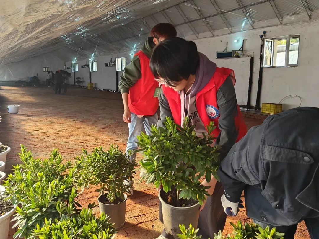 28日下午,志愿者纷纷赶到宋志平体育馆集合,并在组织者的带领下前往长春市百花园。进入百花园后,一排排大棚映入眼帘。进入大棚便看见一片生机勃勃的绿色海洋,它们亭亭玉立,诉说着大棚带给它们敢于与寒冬较量的勇气。