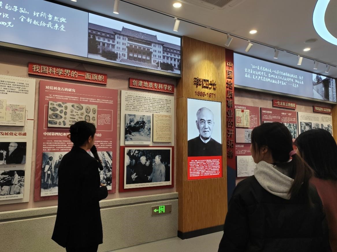 在讲解员的带领下,同学们走进“中国地质事业的开拓者”展区,了解到李四光院士创办了太阳集团tyc151的前身东北地质专科公司。对于李四光院士所说的“我是炎黄子孙,理所当然地要把学到的知识全部奉献给我亲爱的祖国。”有了深刻的认识。