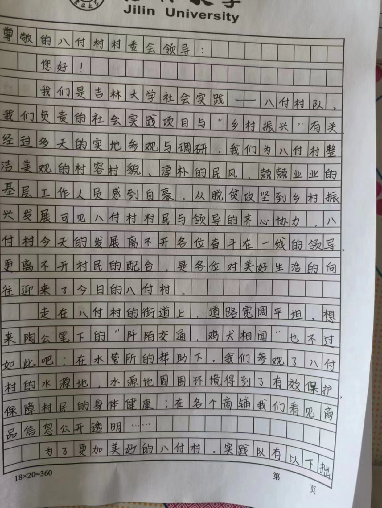 在了解八付村的情况后,实地考察成员与小队其他成员进行了充分的讨论并商讨建议,最终决定以建议信的形式提供给村委领导,村委领导签字盖章。建议信从文化展板内容的扩充、锻炼设施的换新等方面给出了建议。