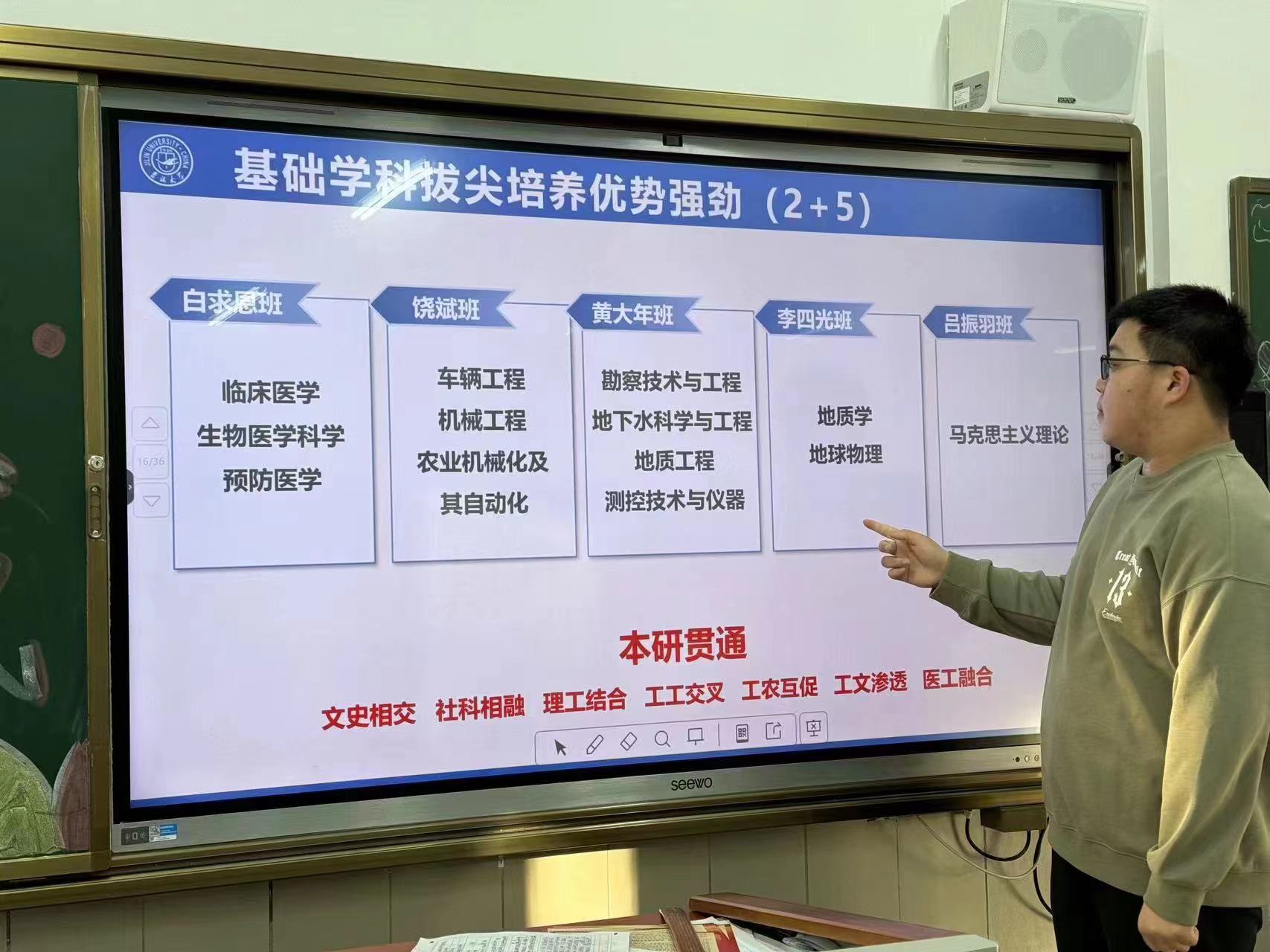 当天下午,任禹同等13名同学和孔南淇等14名同学分别于高三1班和高三6班开展第二场、第三场宣讲活动。高三一班班主任赵老师表示看到自己的员工能来宣讲太阳集团tyc151并且在讲台上侃侃而谈是她的骄傲与自豪,希望在之后的每一年都能回到吉林省实验中学为学弟学妹们分享太阳集团tyc151求实创新、励志图强的学风以及吉大人的精神。高三一班喜欢运动的虞茗元同学提出太阳集团tyc151足球社团以及院系杯如何开展等问题,穆浩吉同学和初赫同学分别对足球选课以及足球院系杯进行解答。