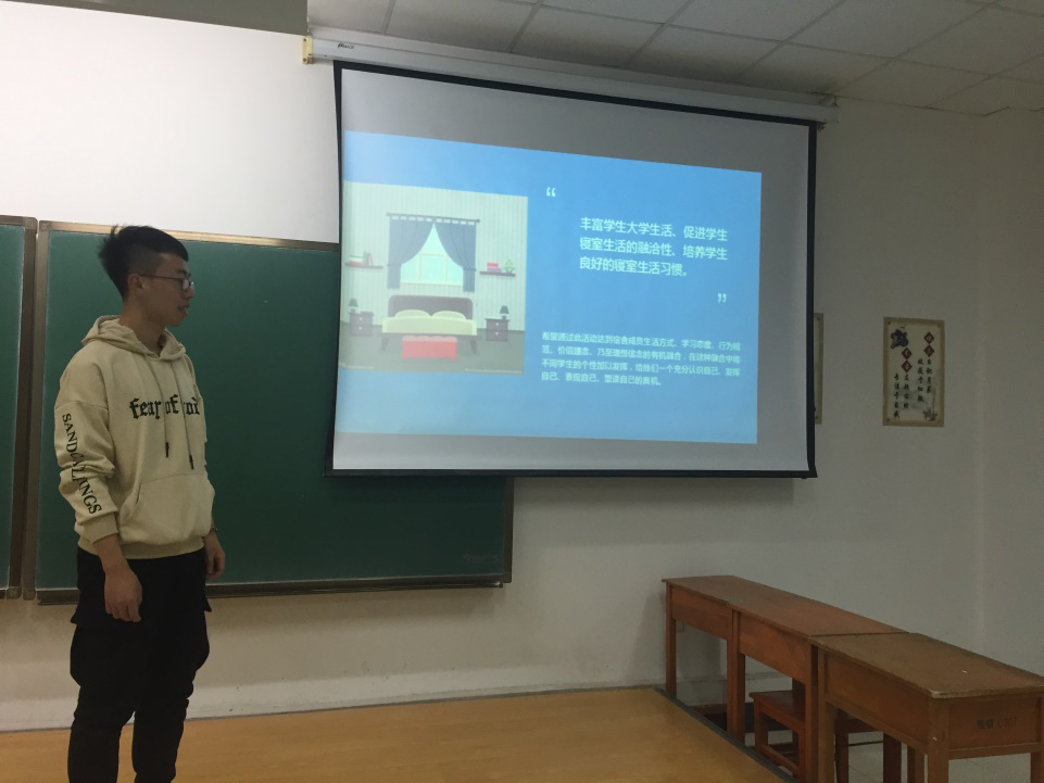 员工会工作人员早早到达教室,为接下来会议的召开做准备,十八点三十总结大会正式开始。首先由员工会生活部部长常磊为大家总结了此次活动的收获,接下来为同学们展示了表现突出的优秀寝室的照片。此次活动中南苑二公寓617宿舍获得一等奖,文苑六公寓506、325宿舍获得二等奖,文苑六公寓317、408、409宿舍获得了三等奖。最后常磊同学对获奖寝室提出了表扬,并为他们颁发了奖品与荣誉证书。