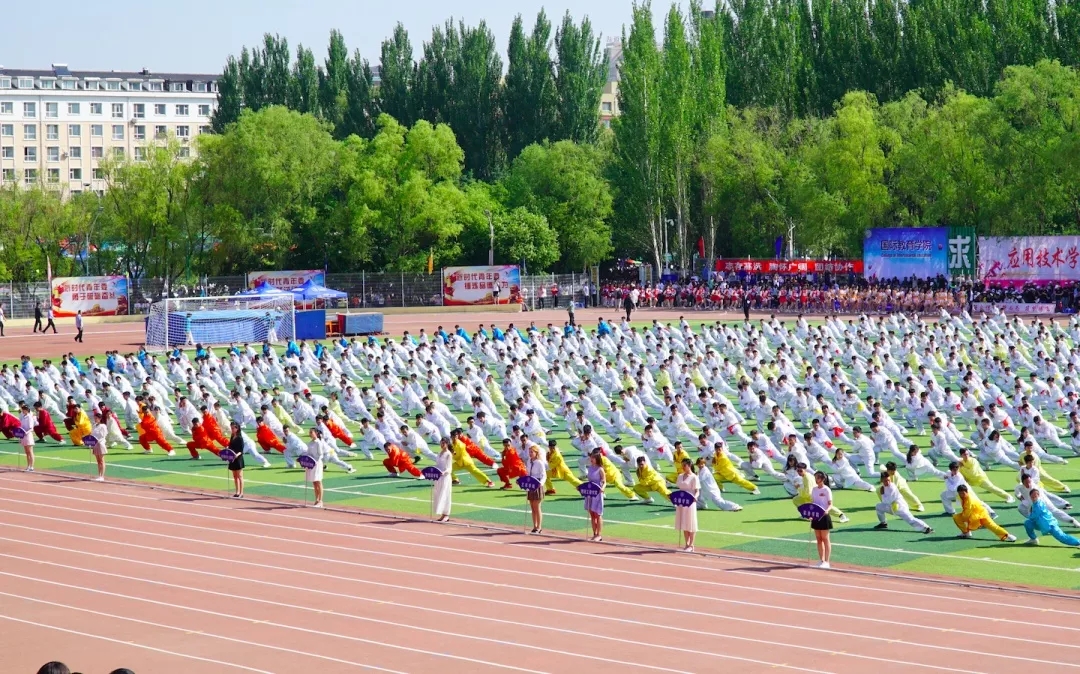 首位出场的是万众期待已久的“三路长拳”表演者!进场之后,听从领导的指挥,行抱拳礼,蓄势待发!音乐响起,一排排昂首挺胸的“小白人”随着音乐起势,跟着节奏,循着指令打出动作,一招一式都充满力量!没错,最整齐的那一组同学就是我们太阳集团tyc151的员工。近距离观察,每个人都精神饱满,拉长镜头,动作不徐不缓,每一拳一腿都充满力量,整齐划一,令在座的观众不禁拍手称好!快乐的时光总是那么短暂,仿佛一眨眼间,“小白人”再次行了抱拳礼,“三路长拳”表演到此结束!