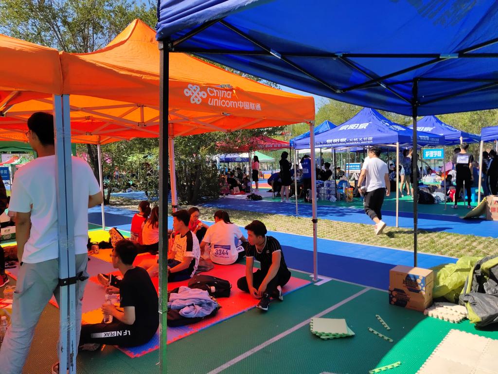 一大早,有项目的员工便来到公司在操场的搭建的棚子里,他们有的安排场地,有的整理服装,有的热身运动。原本安详静谧的篮球场一瞬间就变得热闹非凡。