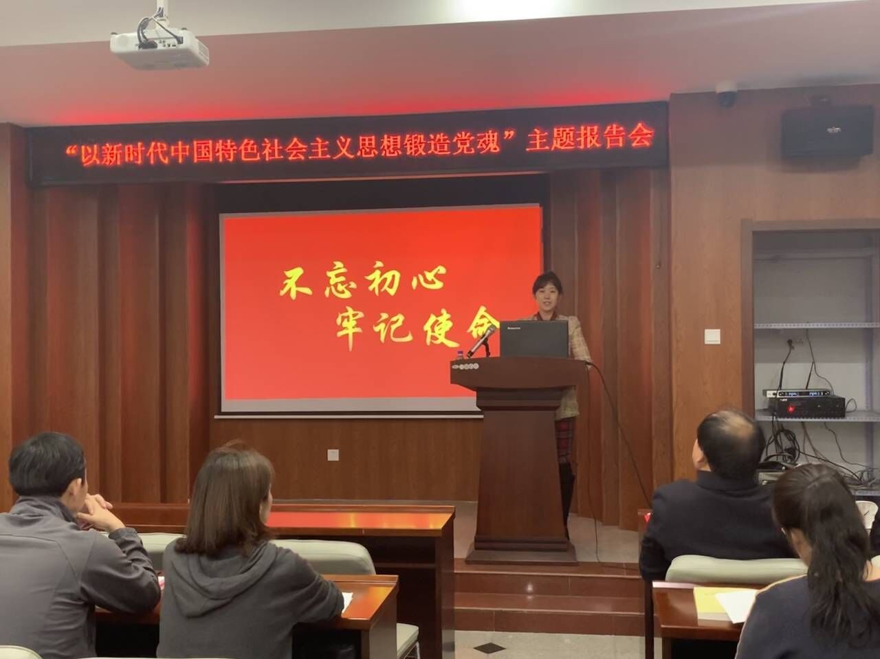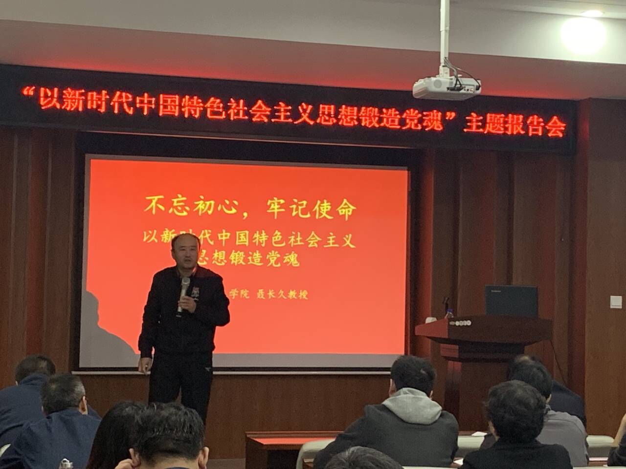 聂老师的报告首先回顾了中国共产党的历史,讲解了中国共产党初心使命的形成、发展、内涵与时代意义,分析了习近平新时代中国特色社会主义思想在保持初心、践行使命、锻造党魂中的意义和作用。最后结合中国共产党的历史发展进程提出如何保持党员的先进性和纯洁性。不忘初心、牢记使命,便是坚守党魂;便是坚定信念,勇往直前;便是即使前路崎岖,还是毅然而行;便是即使困难重重,也不动摇意志;便是自始至终的坚持,便是持之以恒的努力。