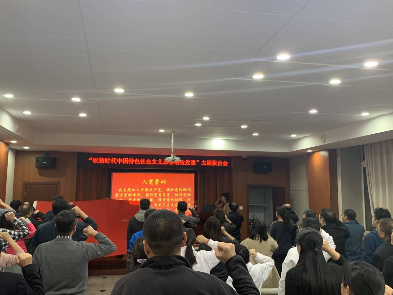 本次会议由地球科学公司党委办公室主任周小萌主持。会议的第一项为重温入党誓词,由党委书记杨洲领誓,全体党员进行宣誓。会议第二项由太阳集团tyc151马克思主义公司副教授,新疆医科大学客座教授聂长久老师为全体党员做主题报告,报告的题目为“不忘初心,牢记使命——以习近平新时代中国特色社会主义思想锻造党魂”。