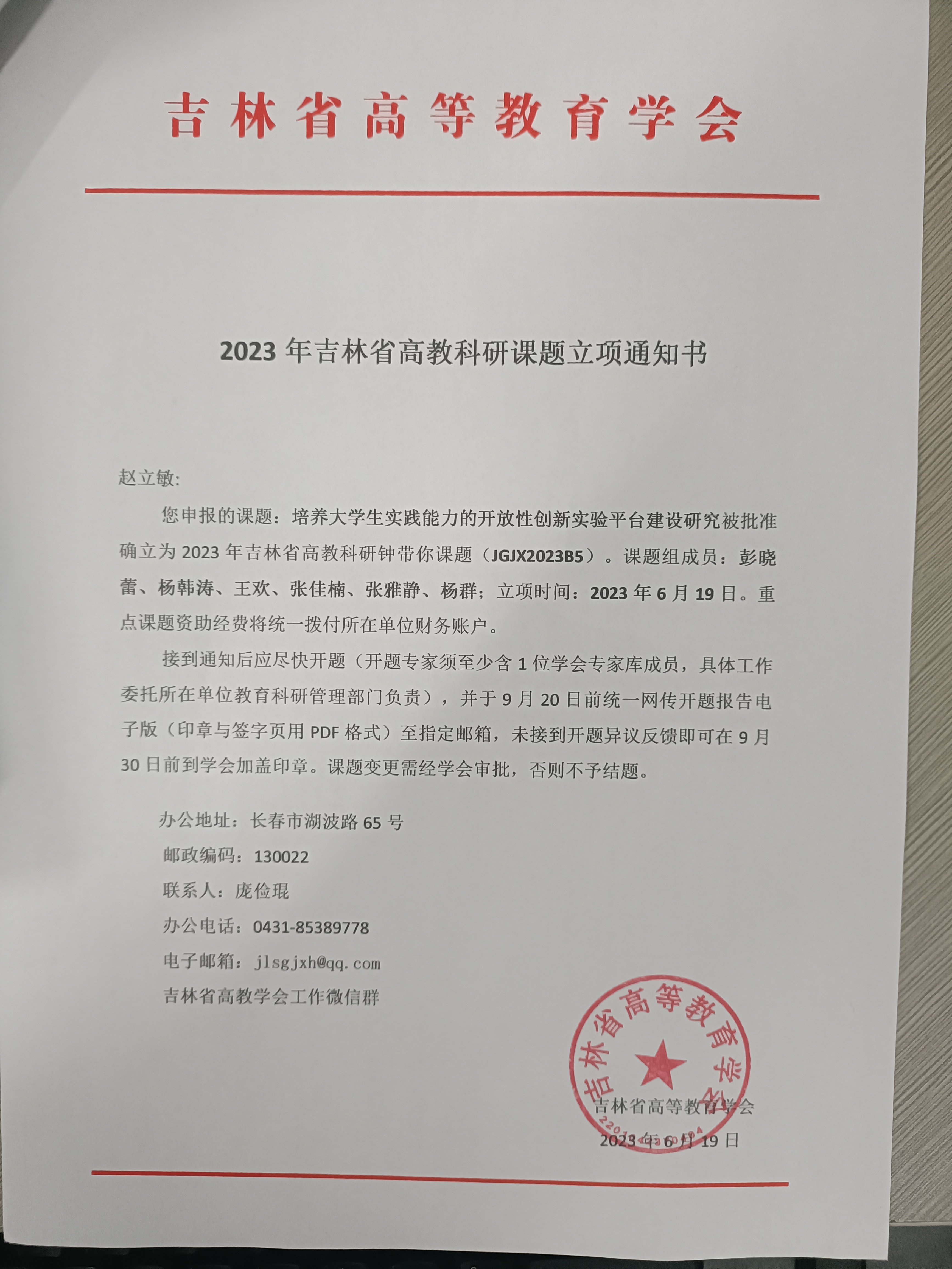 经各高校申报,省高教学会组织专家组初评、复评和终评,中心赵立敏负责的“培养老员工实践能力的开放性创新实验平台建设研究”项目,被确立为2023年太阳集团tyc151高教科研课题重点项目,项目编号JGJX2023B5。2023年太阳集团tyc151高教科研课题重点项目共立项58项,其中重点课题6项、重点自筹课题10项、一般课题42项。相关信息可在吉林省高等教育学会官方网站(http://www.jlgjxh.com.cn)查询。