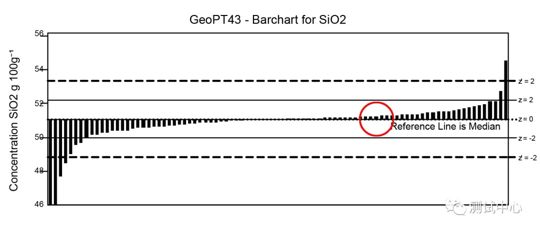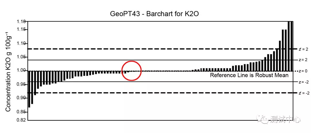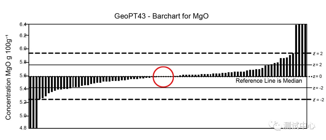 本次测试需要参赛单位报出的10个常量元素(SiO2, TiO2, Al2O3, Fe2O3T, MnO, MgO, CaO, Na2O,K2O)测试结果。东北亚矿产资源评价重点实验室的测试结果合格率达到100%,测试结果Z值最高为0.26 (Z<2为合格),在全球128家参与测试的科研院所中位列榜首。