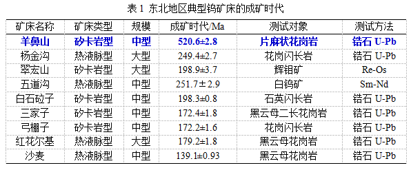 随着基础地质研究的加强和地质找矿工作不断深入,中国东北地区钨矿找矿工作取得较大进展,现已发现十余个矿床(点)。这些矿床的发现预示着我国东北地区具有较大的钨矿找矿潜力。然而,目前已发现的钨矿成矿时代以中生代为主,少量为晚古生代。而东北地区是否存在早古生代钨成矿作用,由于缺乏关键的成矿年龄证据,一直不得而知。