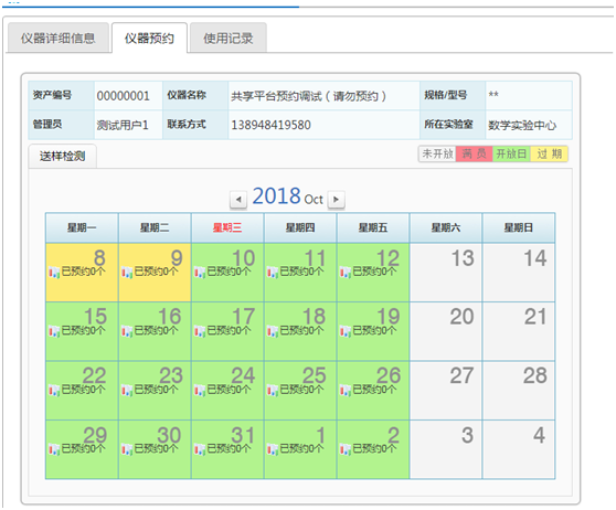 选择预约送样或预约检测的时间(选择绿色区域)