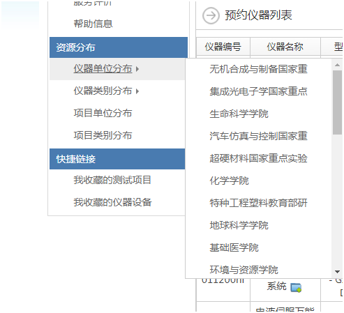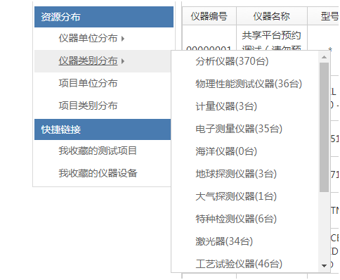 (2)按照仪器类别分布进行查找