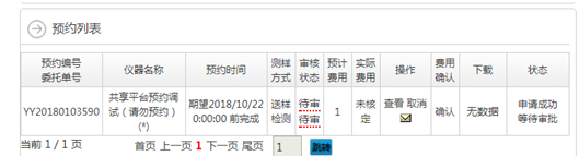 选择我预约的仪器设备,可查看预约信息
