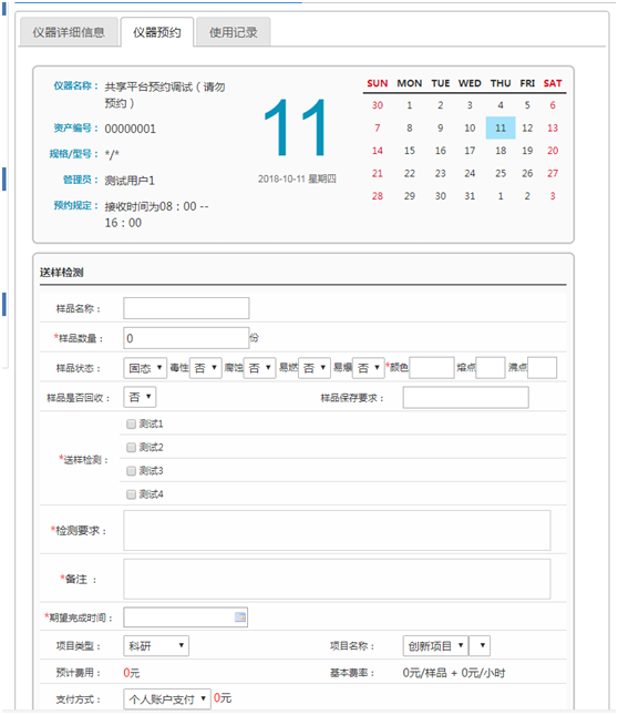 4、 仪器预约
