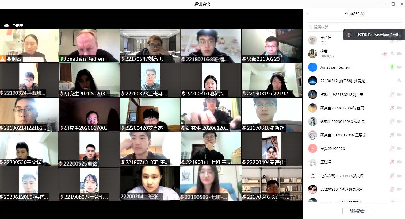 本项目累计约213名师生参加了本次线上课程,参与课程学习的本科生表示通过与国际地质学大师的学习,提高了他们的英语水平和专业素养,激发了对新能源的兴趣和对地质类专业的信心。参与课程学习的研究生表示,课程的学习拓展了他们的国际视野,为今后继续深造指明了方向。参加课程学习的青年老师们表示,此次课程极大的提升了他们的教学和科研水平,为他们今后开展国际课程的研修搭建了有效的平台。