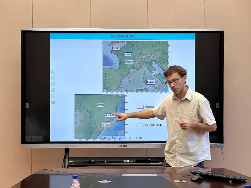 9月22日上午,卡米尔副教授以Earth’s Surface at the Onset of the Great Oxidation Event: Cold, But Not Freezing(大氧化事件开始时的地球表面 : 寒冷而不是冰封)为题,为公司师生做学术报告,介绍对于太古代-元古代之交,通过地球化学手段对与全球气候变化研究的最新成果。